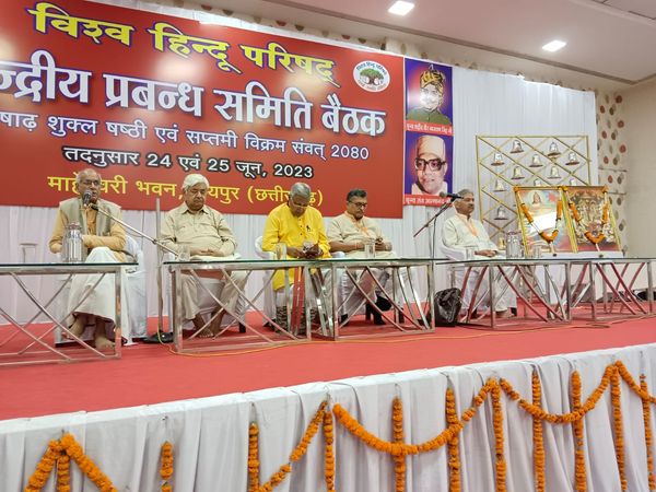 रायपुर। 25 जून 2023। विश्व हिंदू परिषद की केंद्रीय प्रबंध समिति की बैठक रविवार को रायपुर में संपन्न हुई। बैठक के बारे में बताते हुए विहिप के केंद्रीय कार्याध्यक्ष व वरिष्ठ अधिवक्ता श्री आलोक कुमार ने बताया कि इसमें हिंदू परिवार व्यवस्था पर हो रहे चहुं तरफा प्रहारों तथा बढ़ती लव जिहाद व धर्मांतरण की घटनाओं पर चिंता व्यक्त करते हुए एक व्यापक कार्य योजना बनी। इसके अंतर्गत बजरंग दल आगामी 30 सितंबर से 14 अक्टूबर के बीच देशव्यापी शौर्य जागरण यात्राएं निकालेगा। इन यात्राओं के माध्यम से देश के हर कोने मैं रहने वाले हिंदुओं को संगठित कर उन्हें इन समस्याओं से निपटने में सक्षम बनाया जाएगा। दीपावली के आस-पास पूज्य संतों के देश व्यापी प्रवासों के मध्यम से जन जन तक पहुंच बढ़ा कर व्यक्तियों को परिवारों से और परिवारों को सामाजिक व राष्ट्रीय जीवन मूल्यों से पुन: जोड़ा जाएगा।